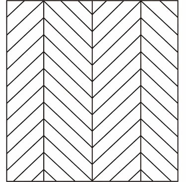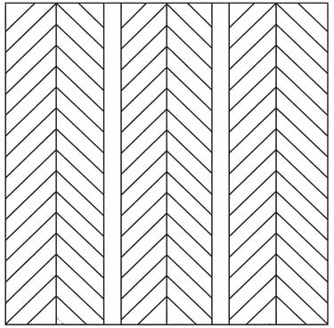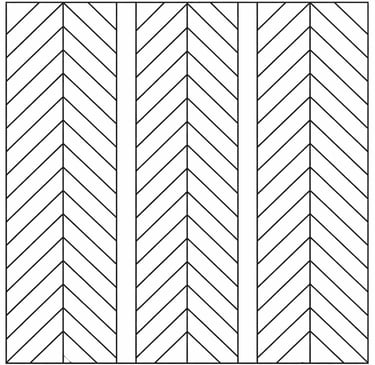 Lames posées à 90° de manière perpendiculaire. Motif en V alterné.